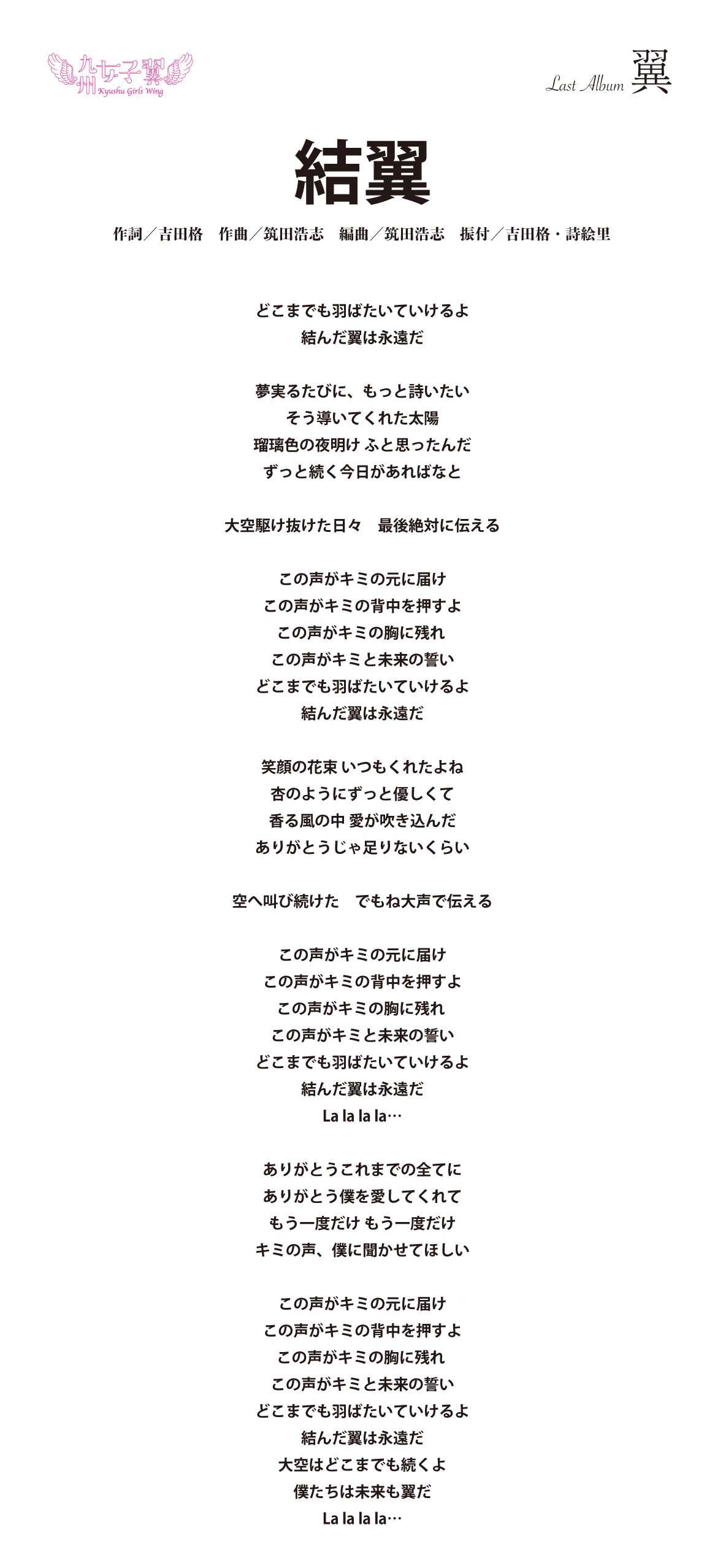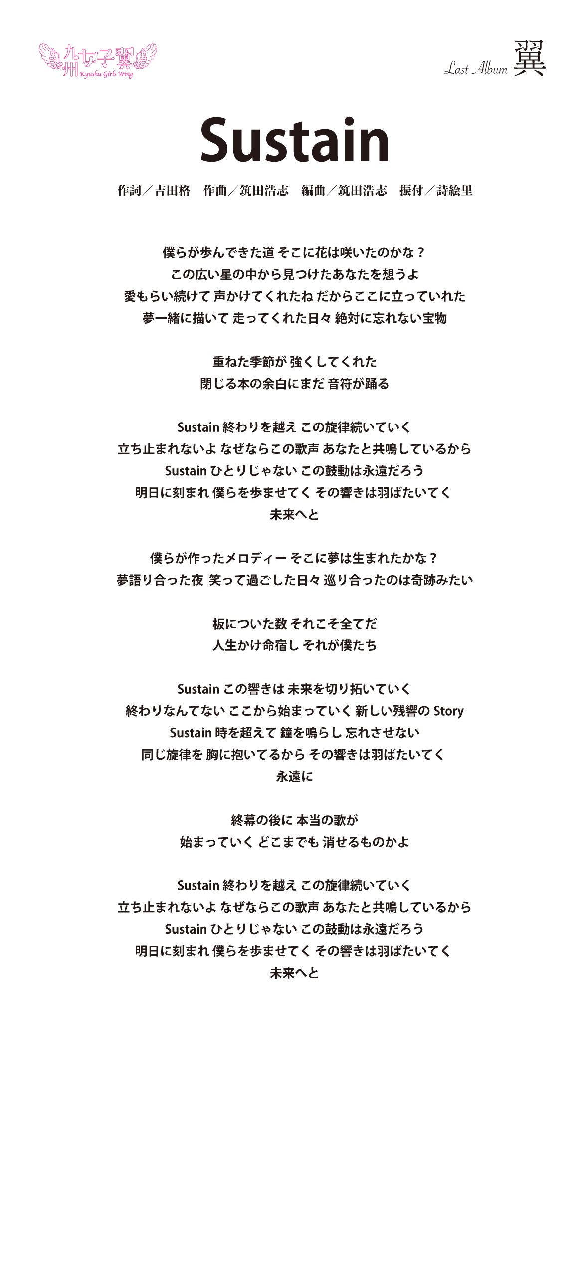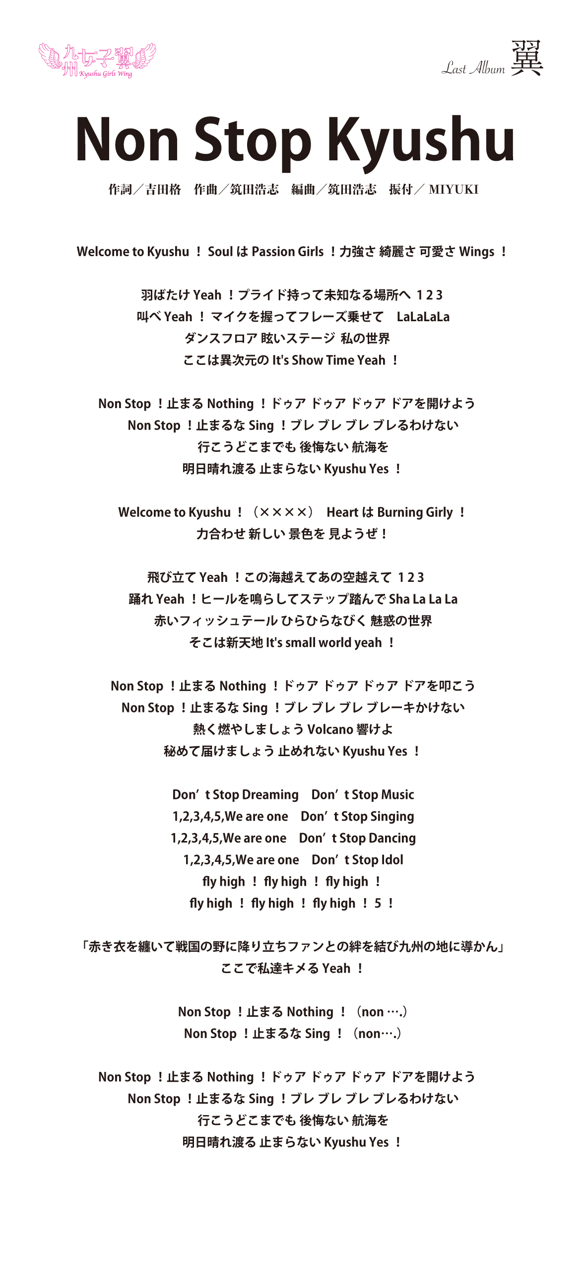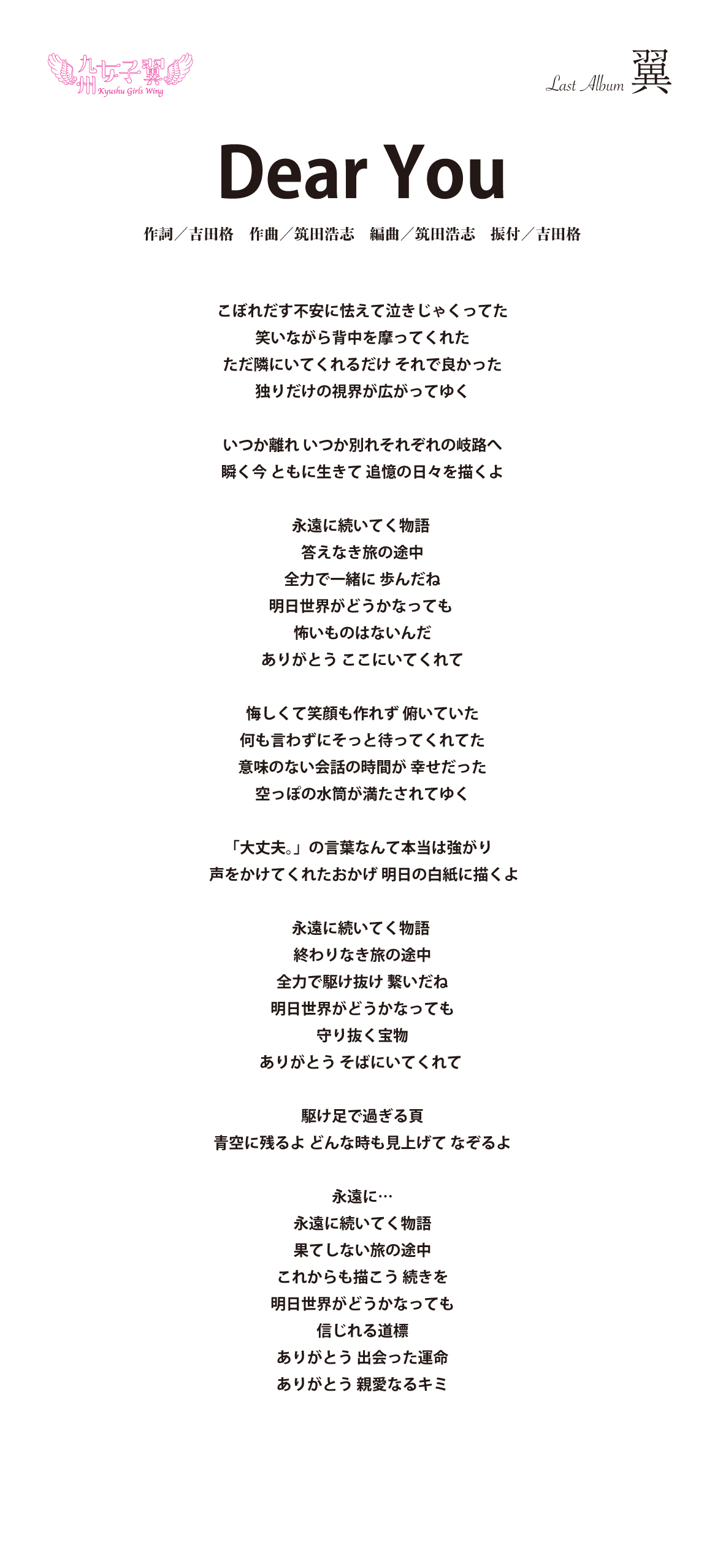 九州女子翼 Last Album「翼」歌詞