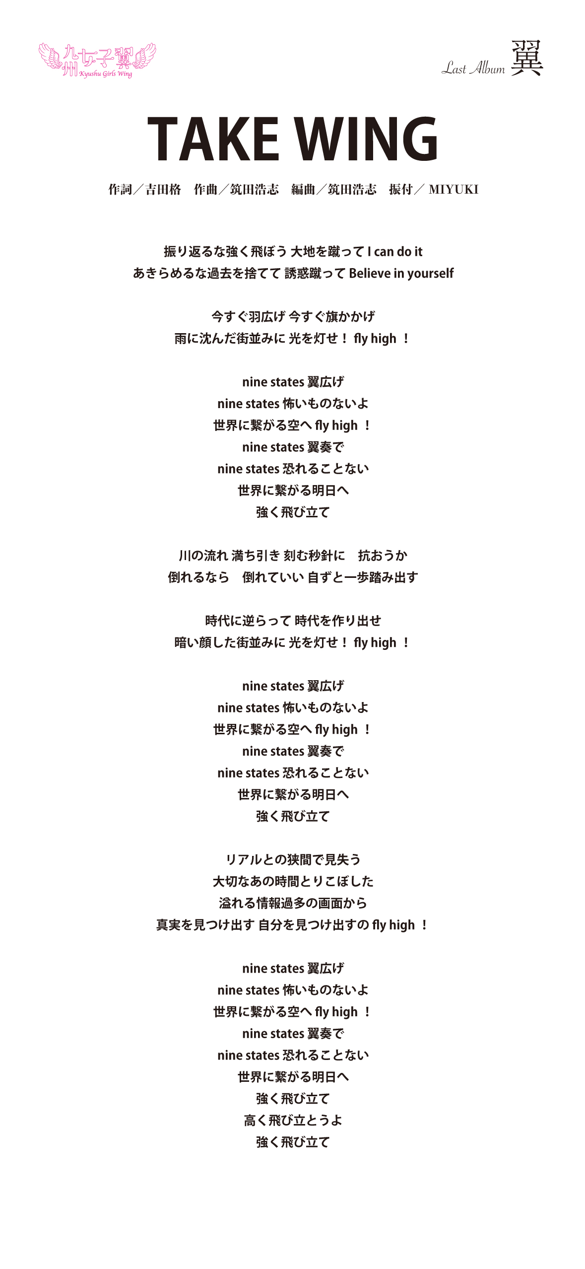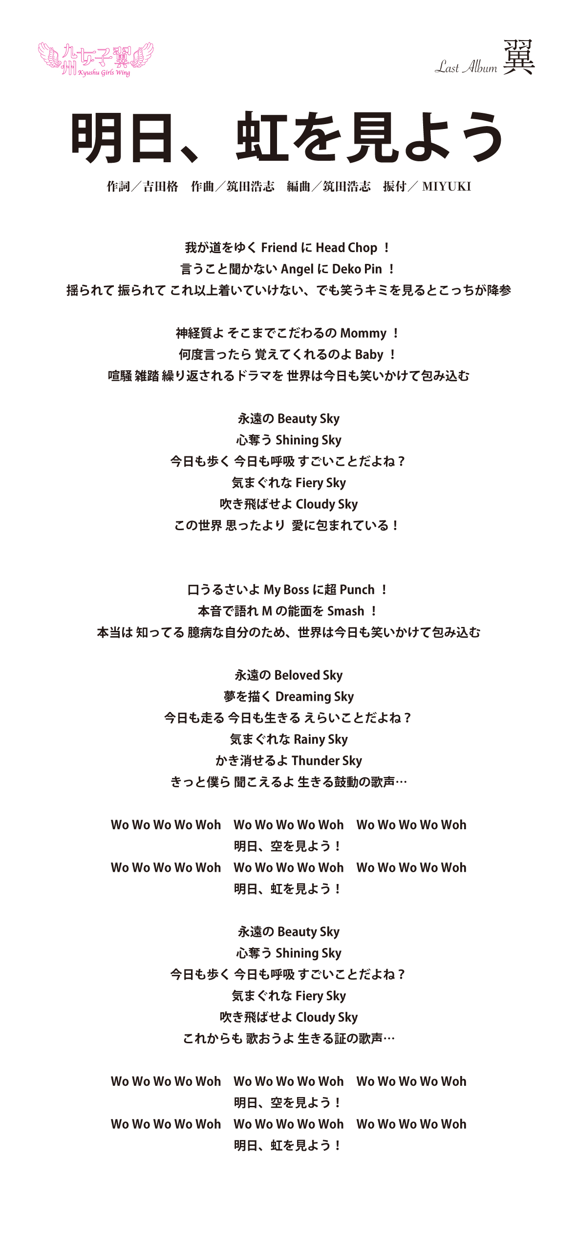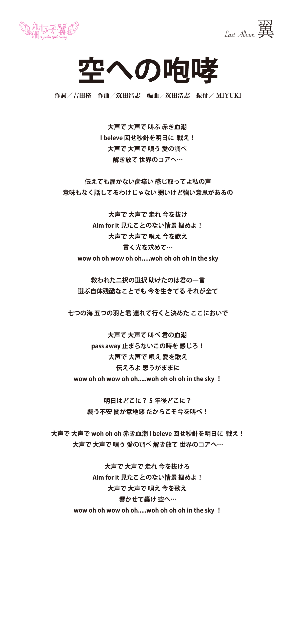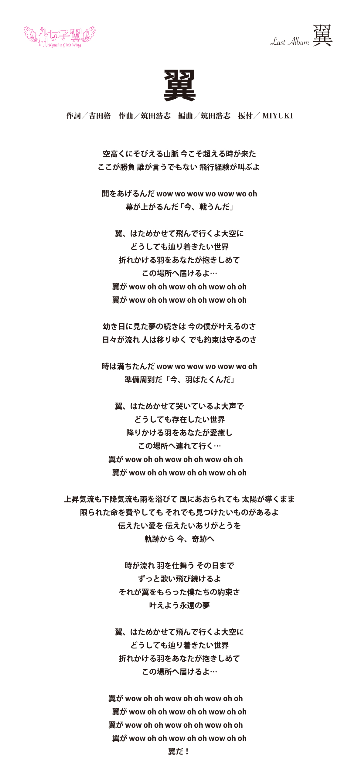九州女子翼 Last Album「翼」歌詞