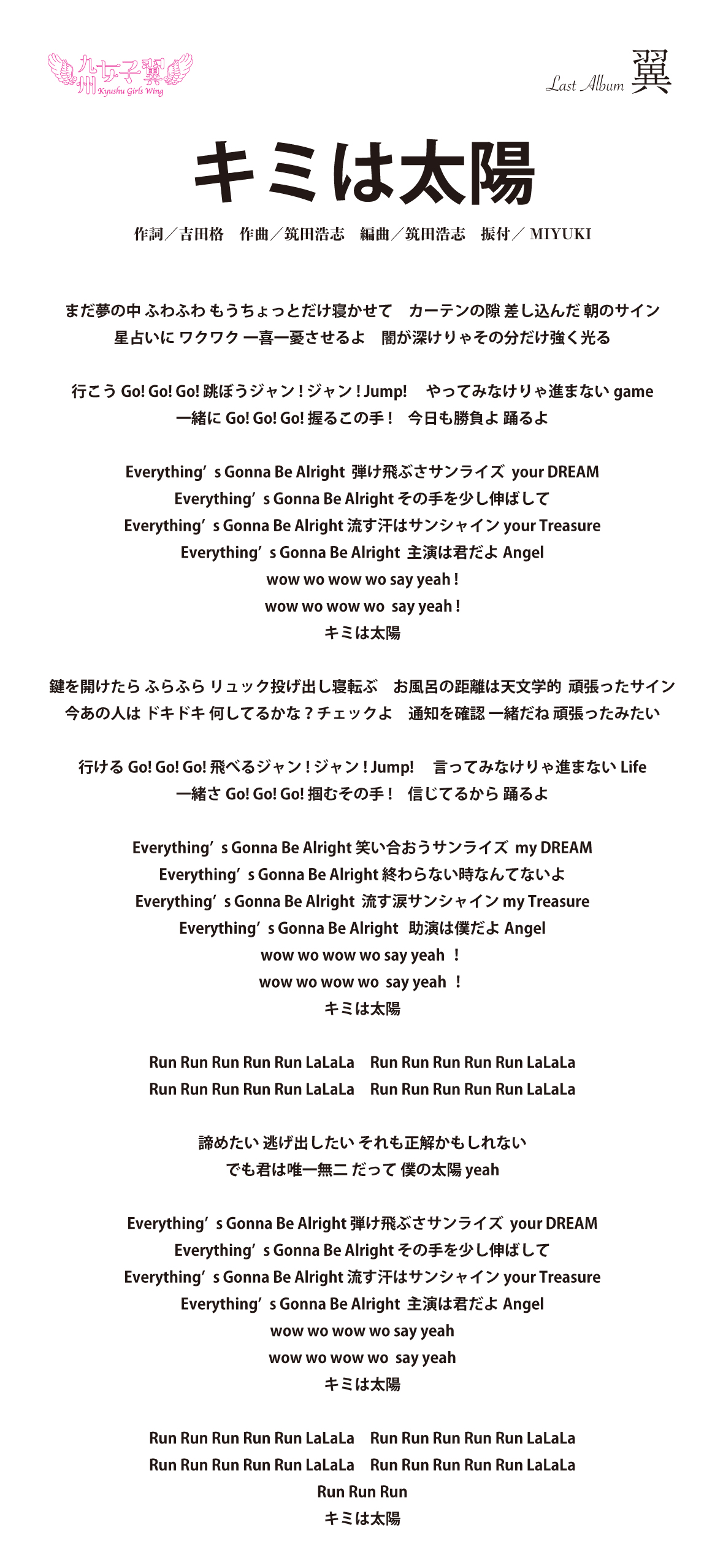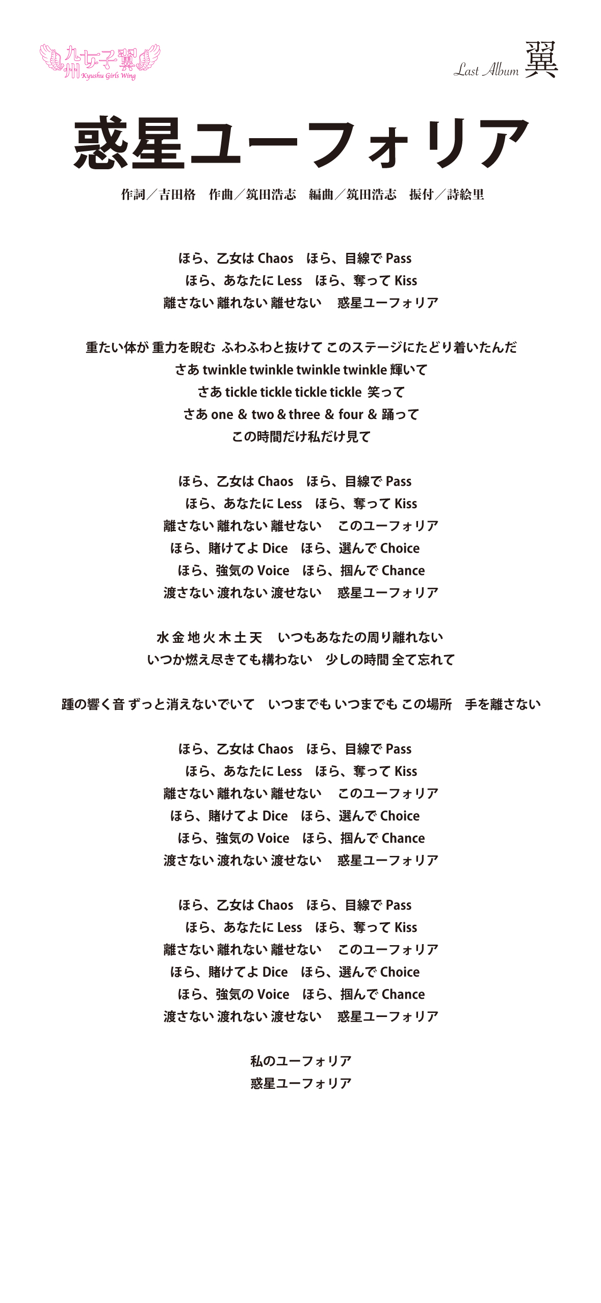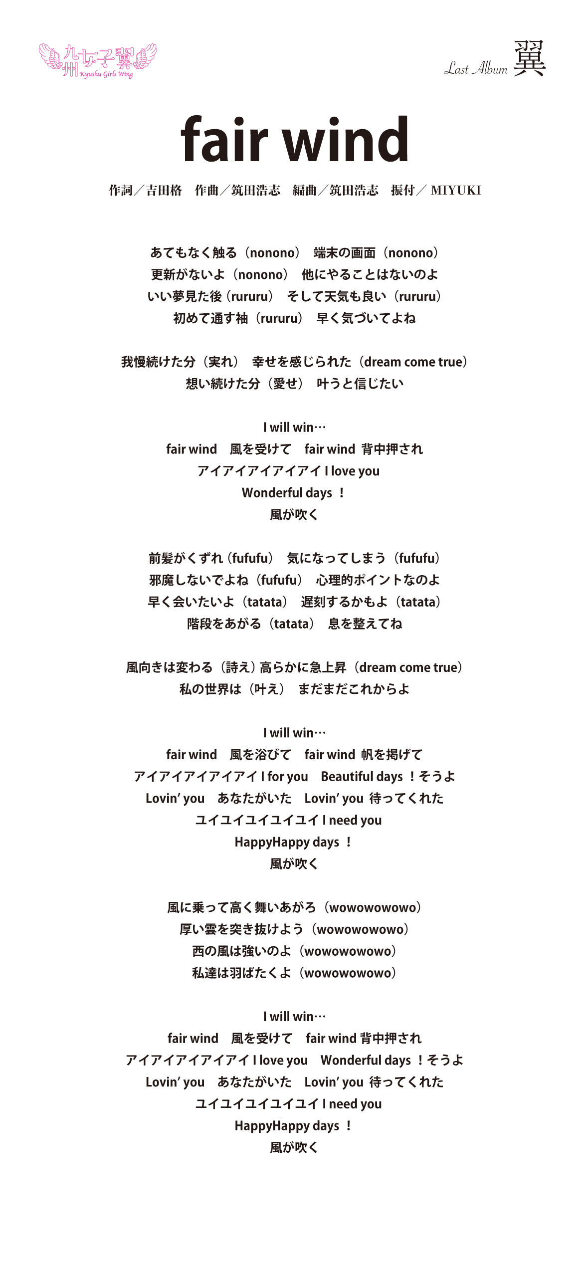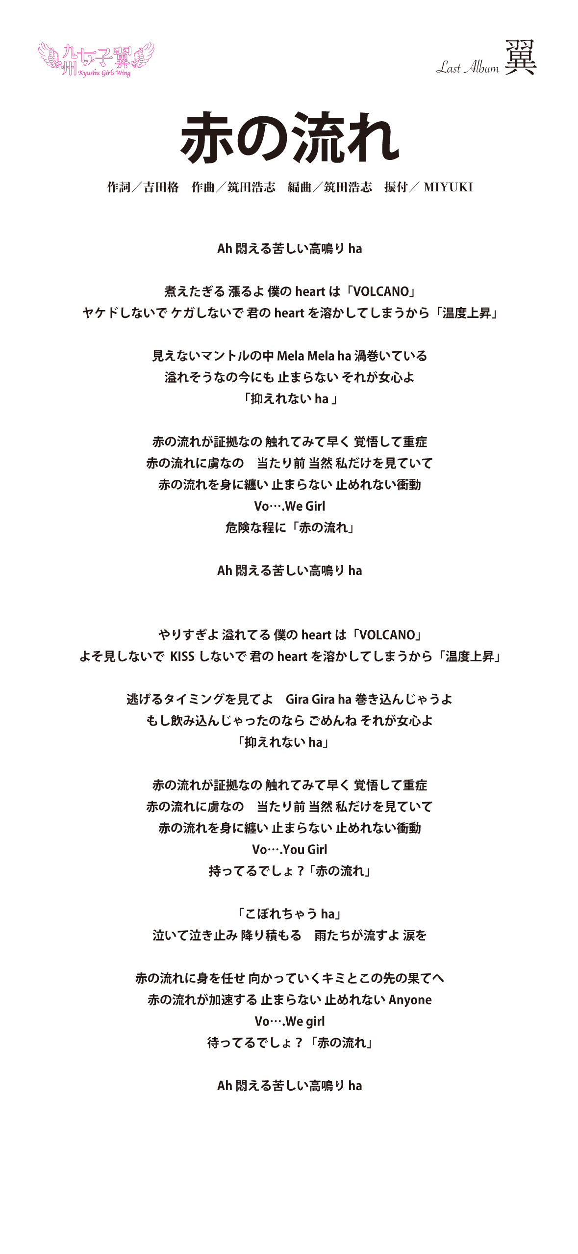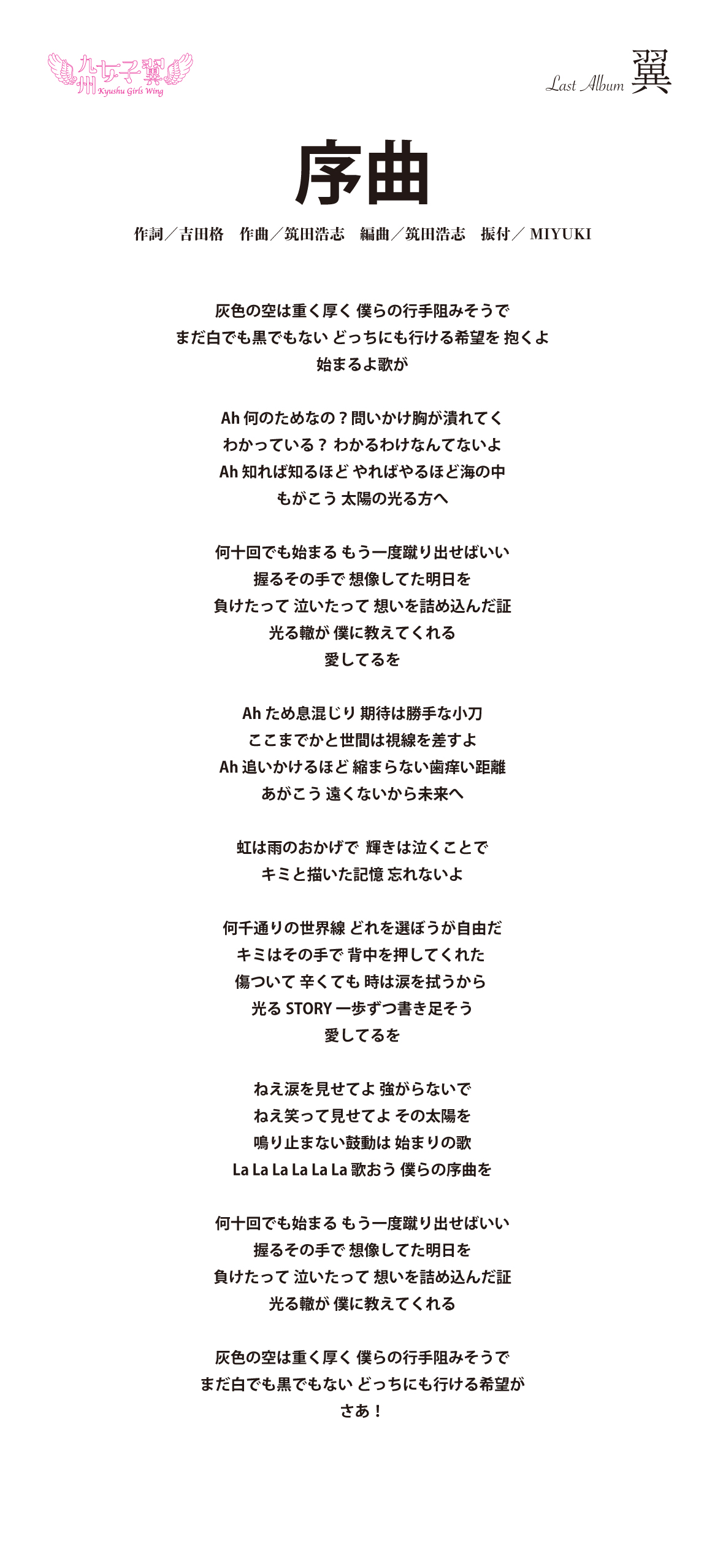 九州女子翼 Last Album「翼」歌詞