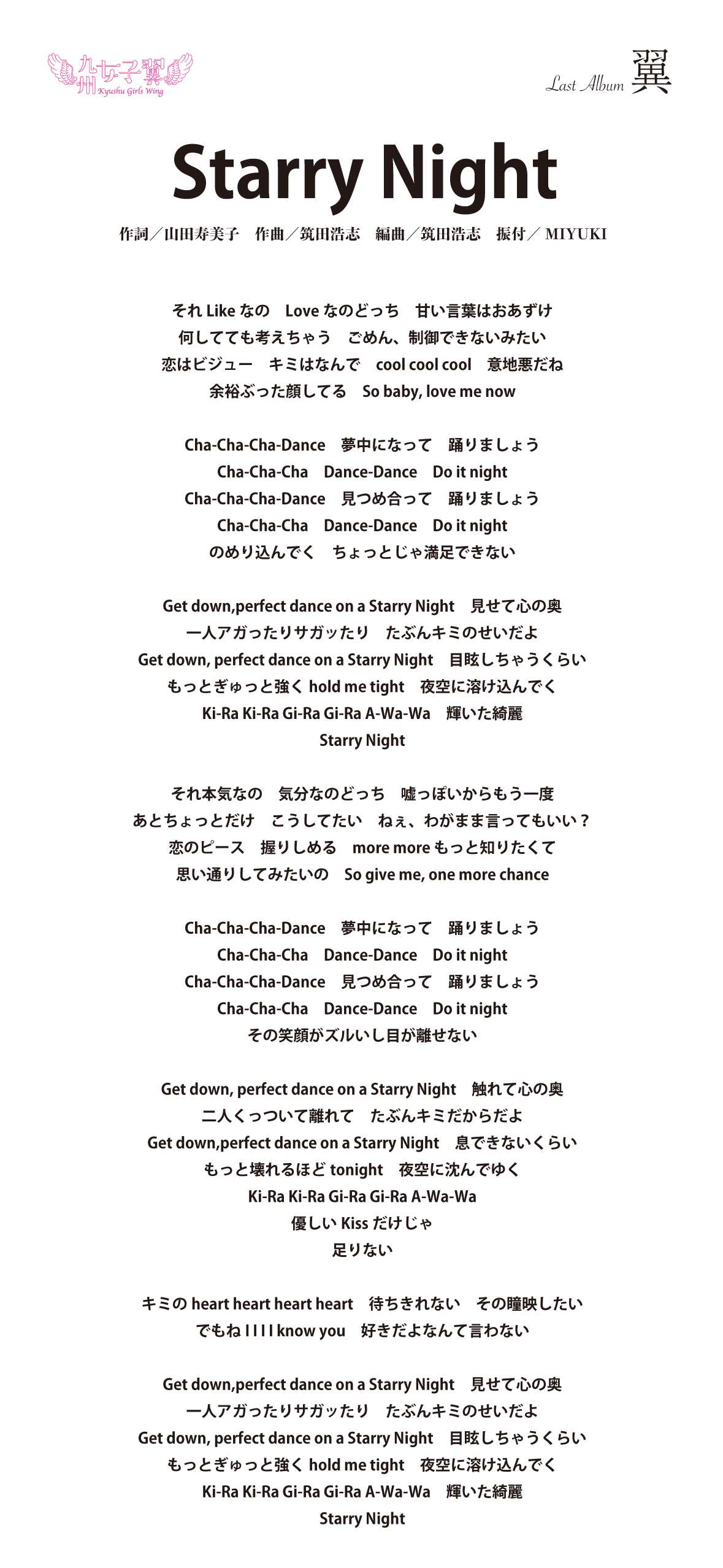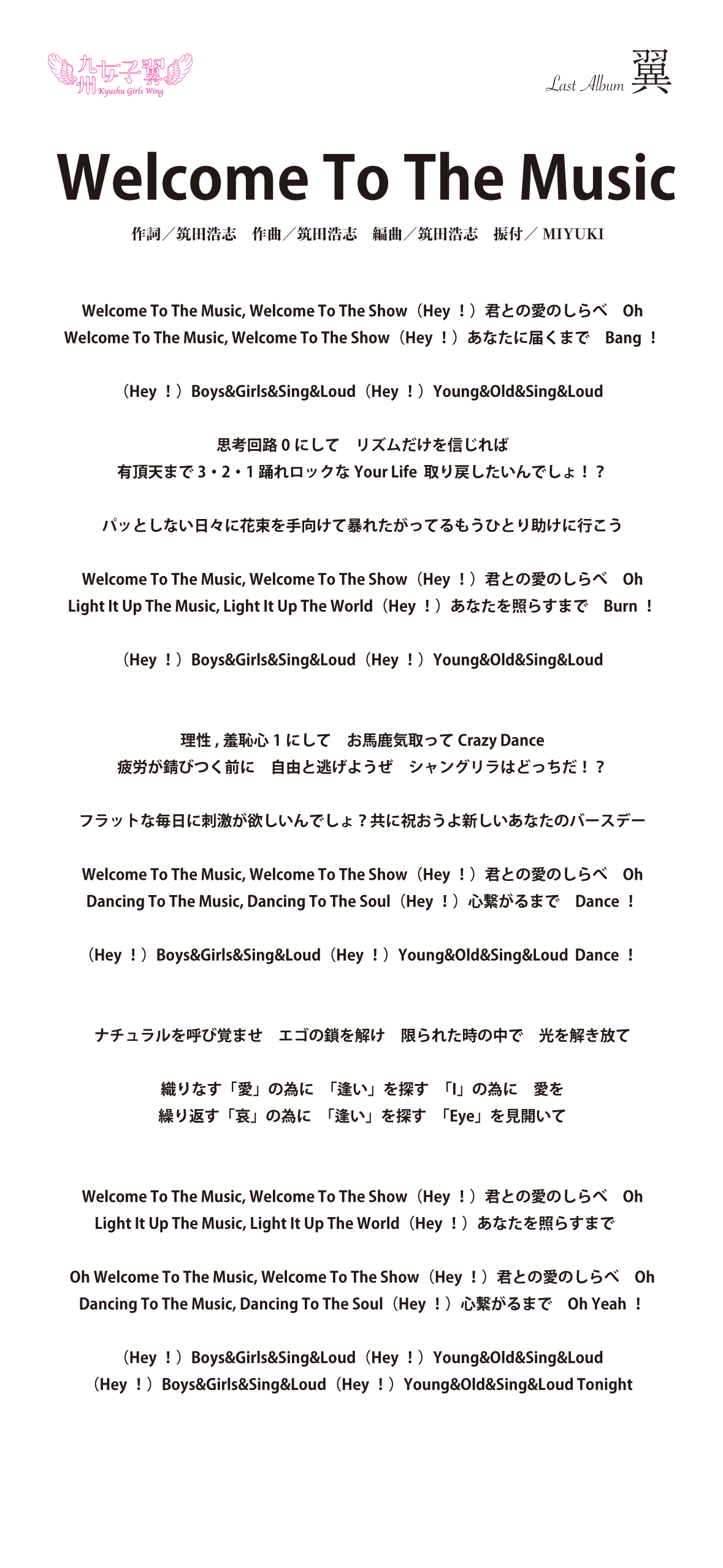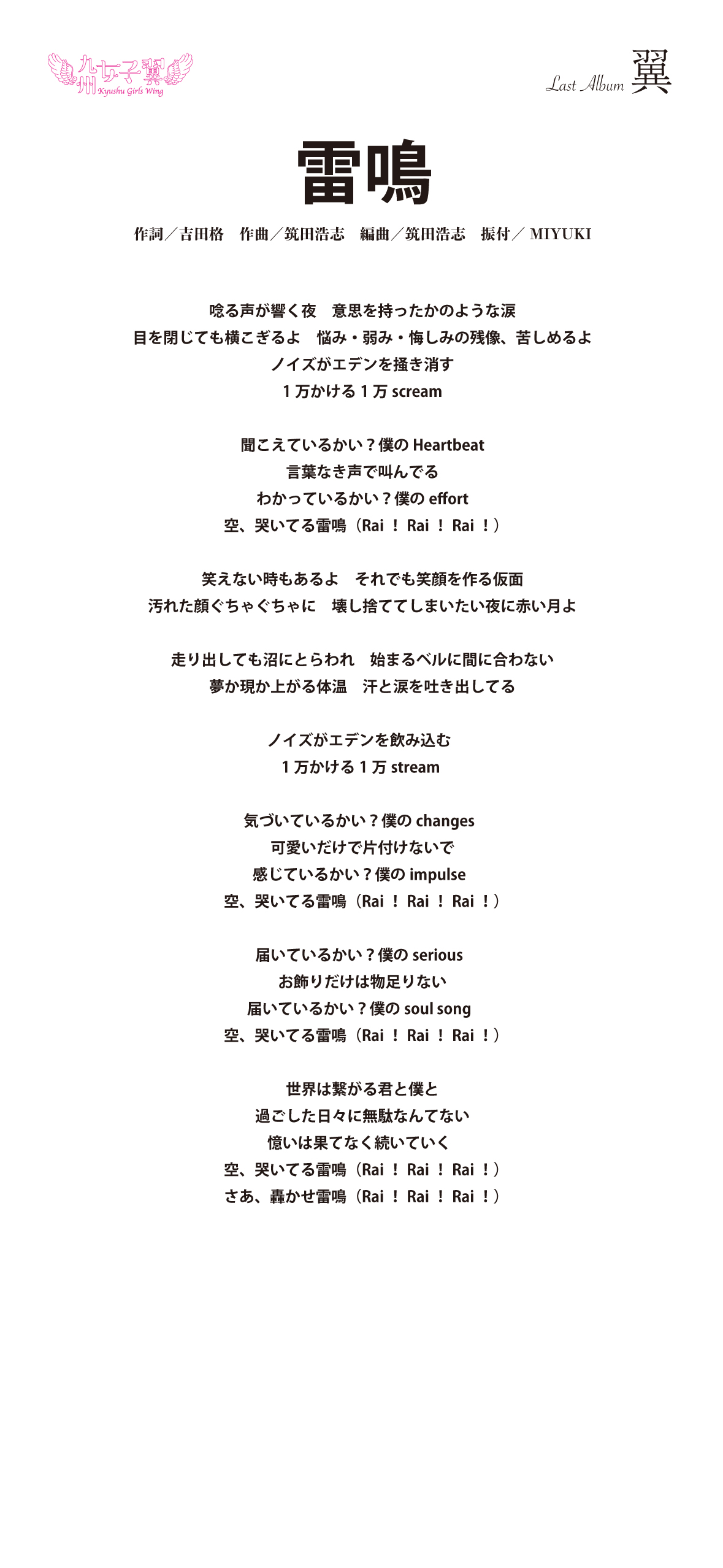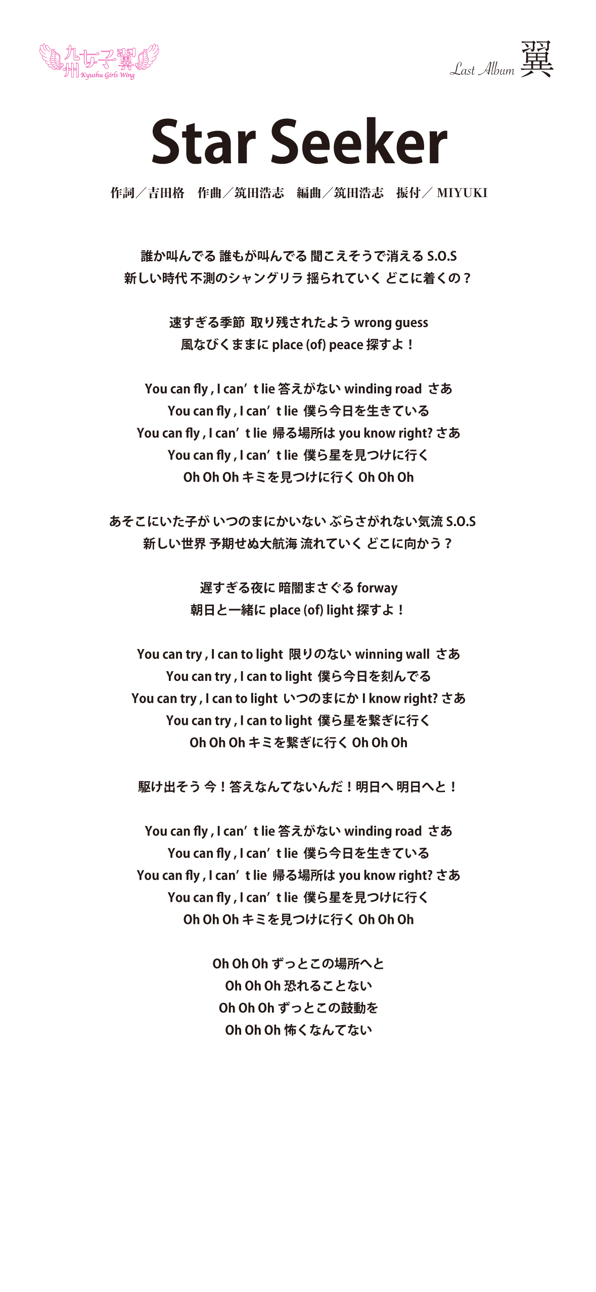 九州女子翼 Last Album「翼」歌詞