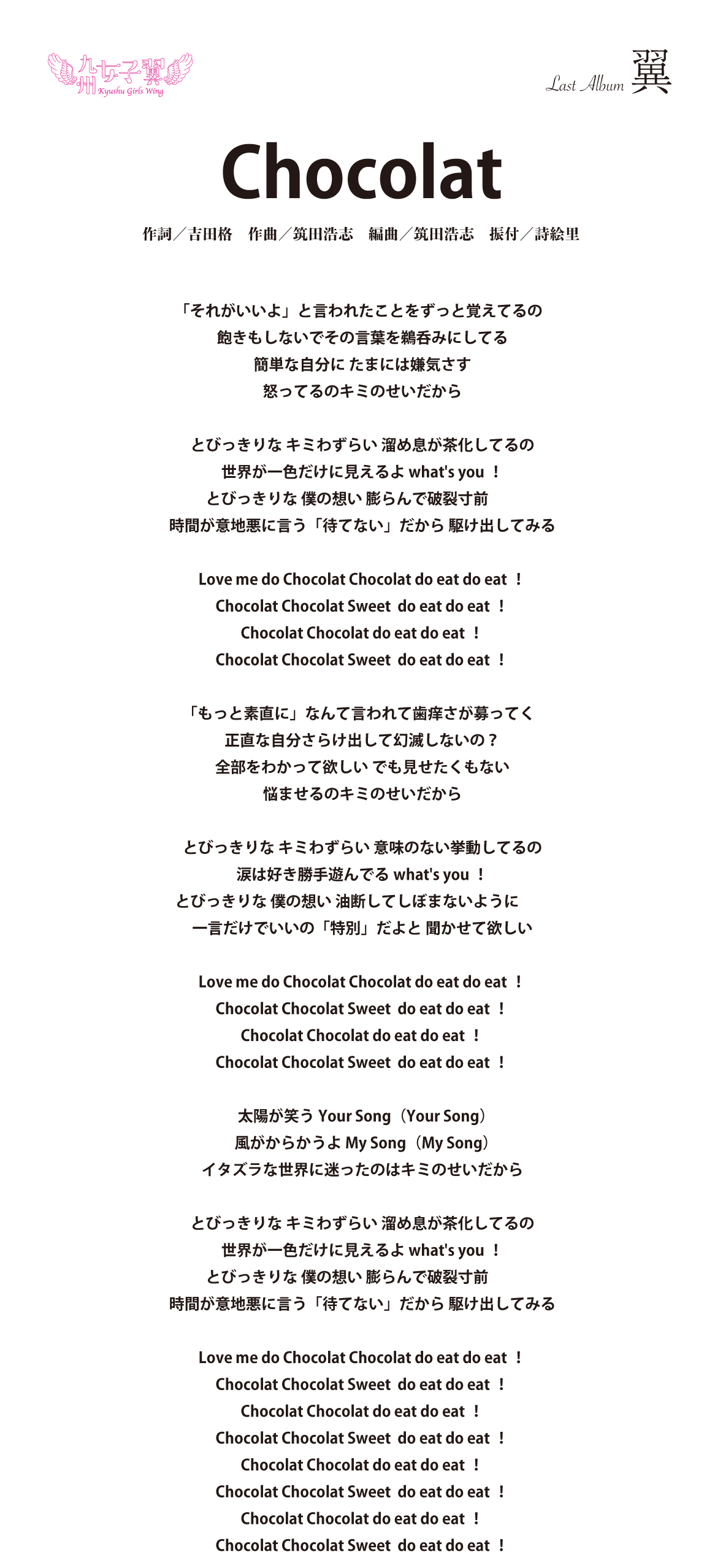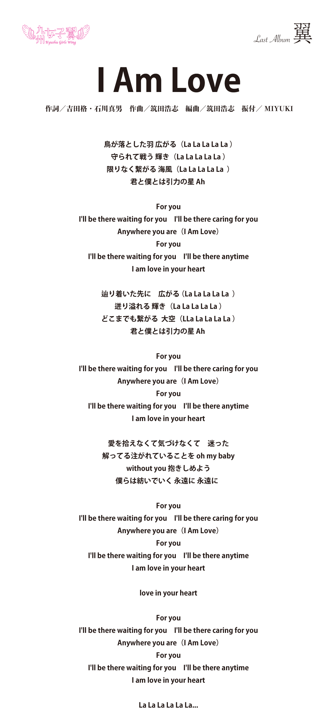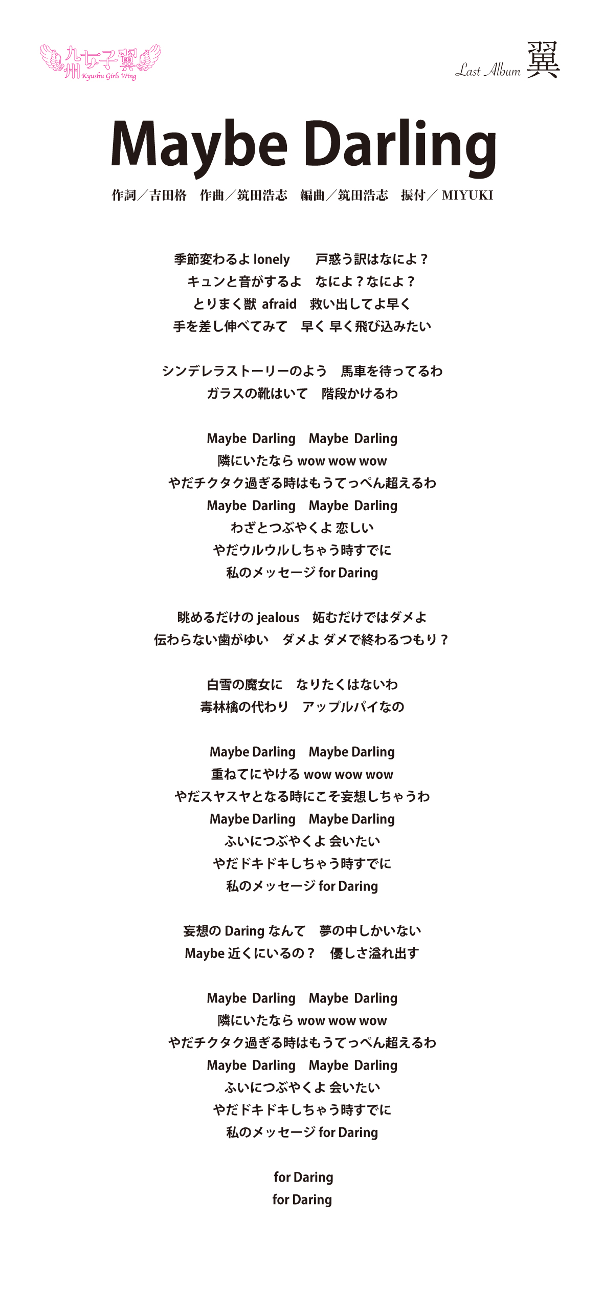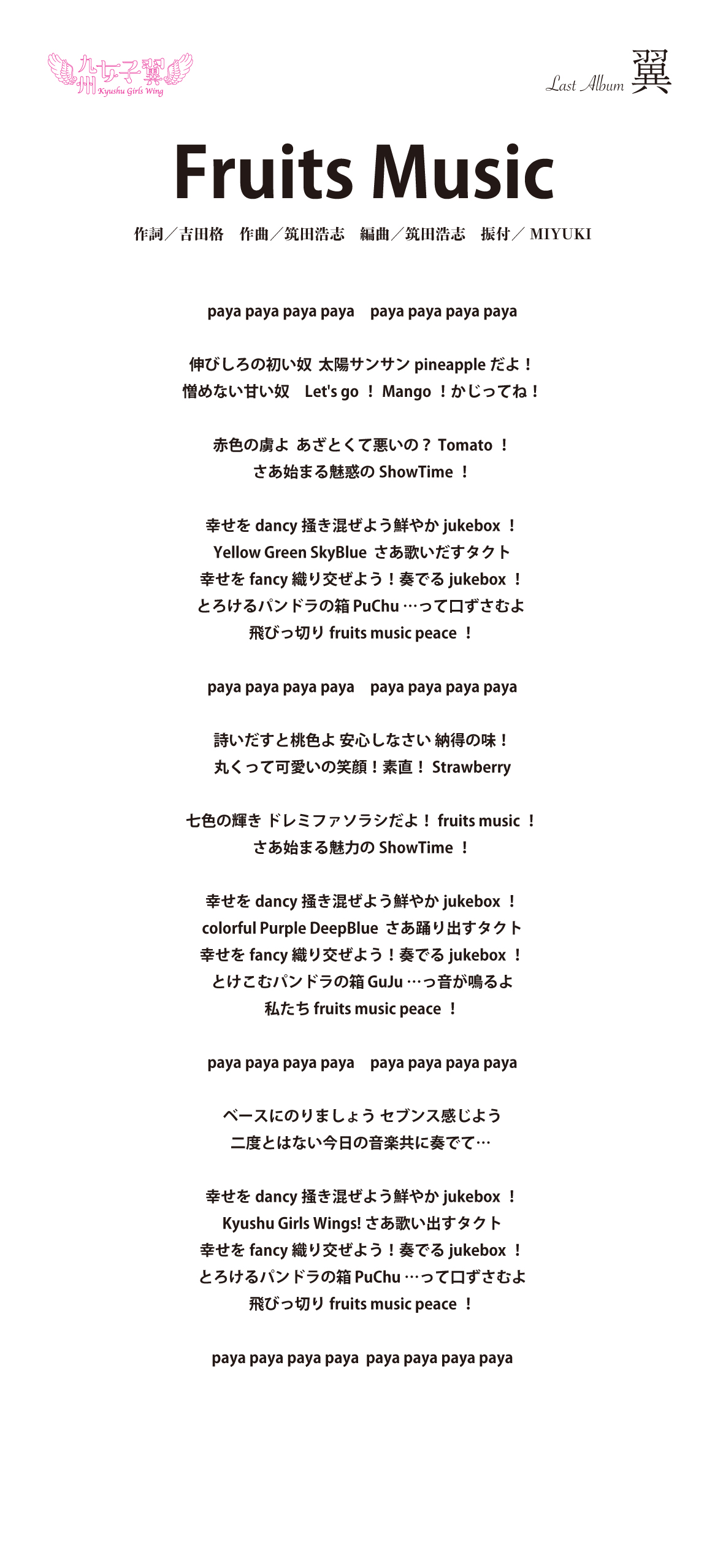 九州女子翼 Last Album「翼」歌詞