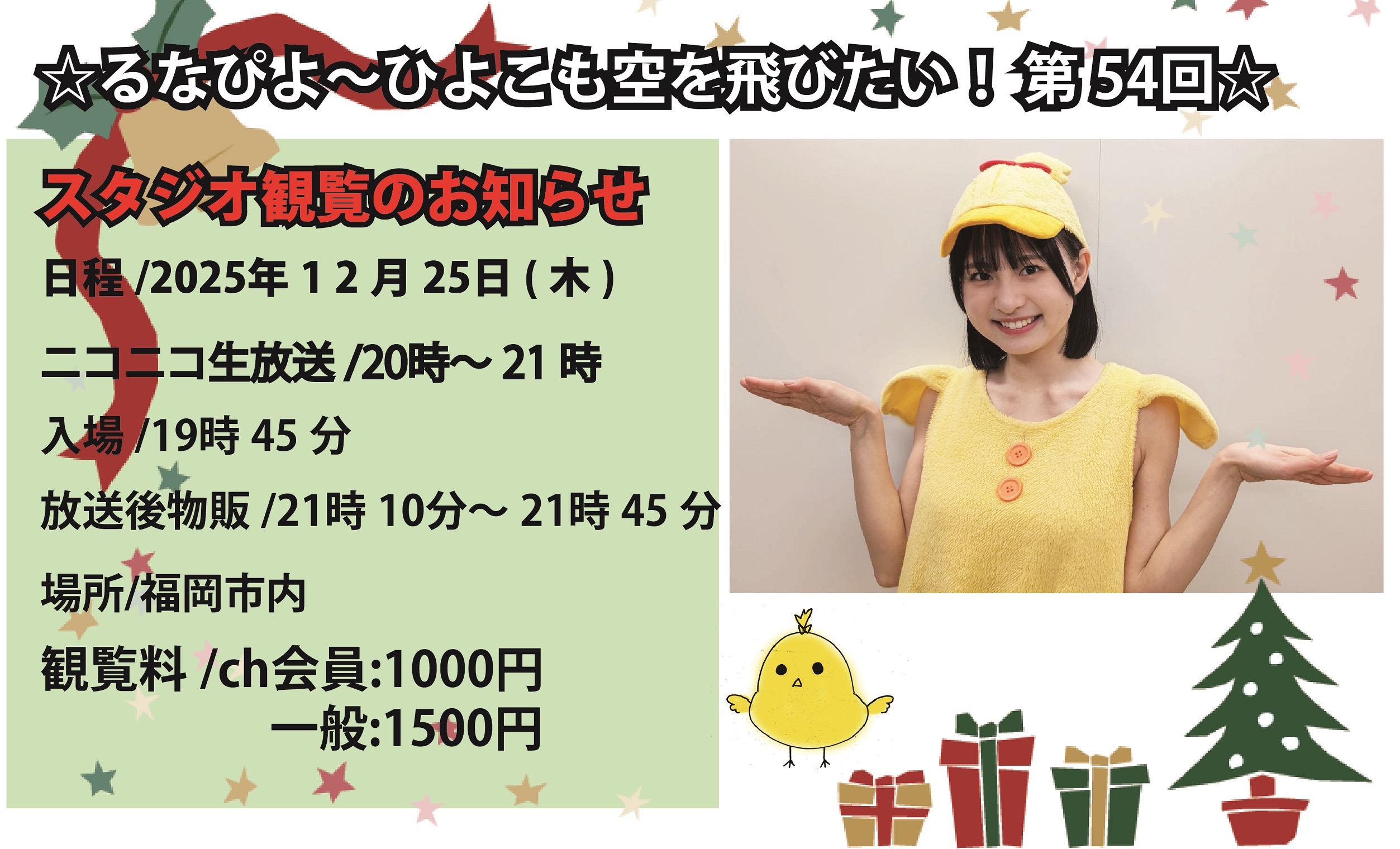 ☆12/25 ニコ生鈴川瑠菜冠番組「るなぴよ〜ひよこも空を飛びたい!第54話」